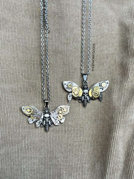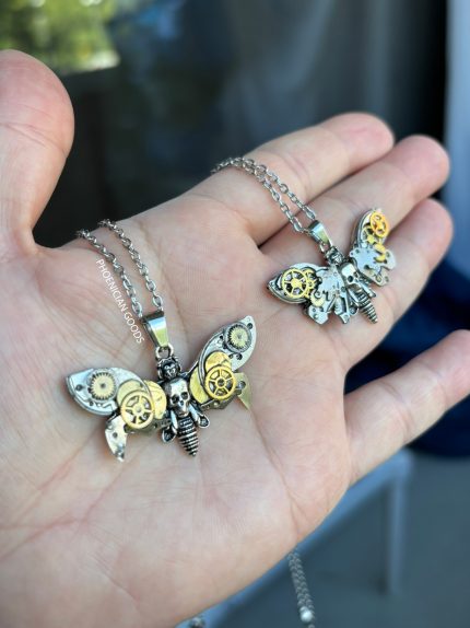 Small Moth – Necklace (with gold gears)
